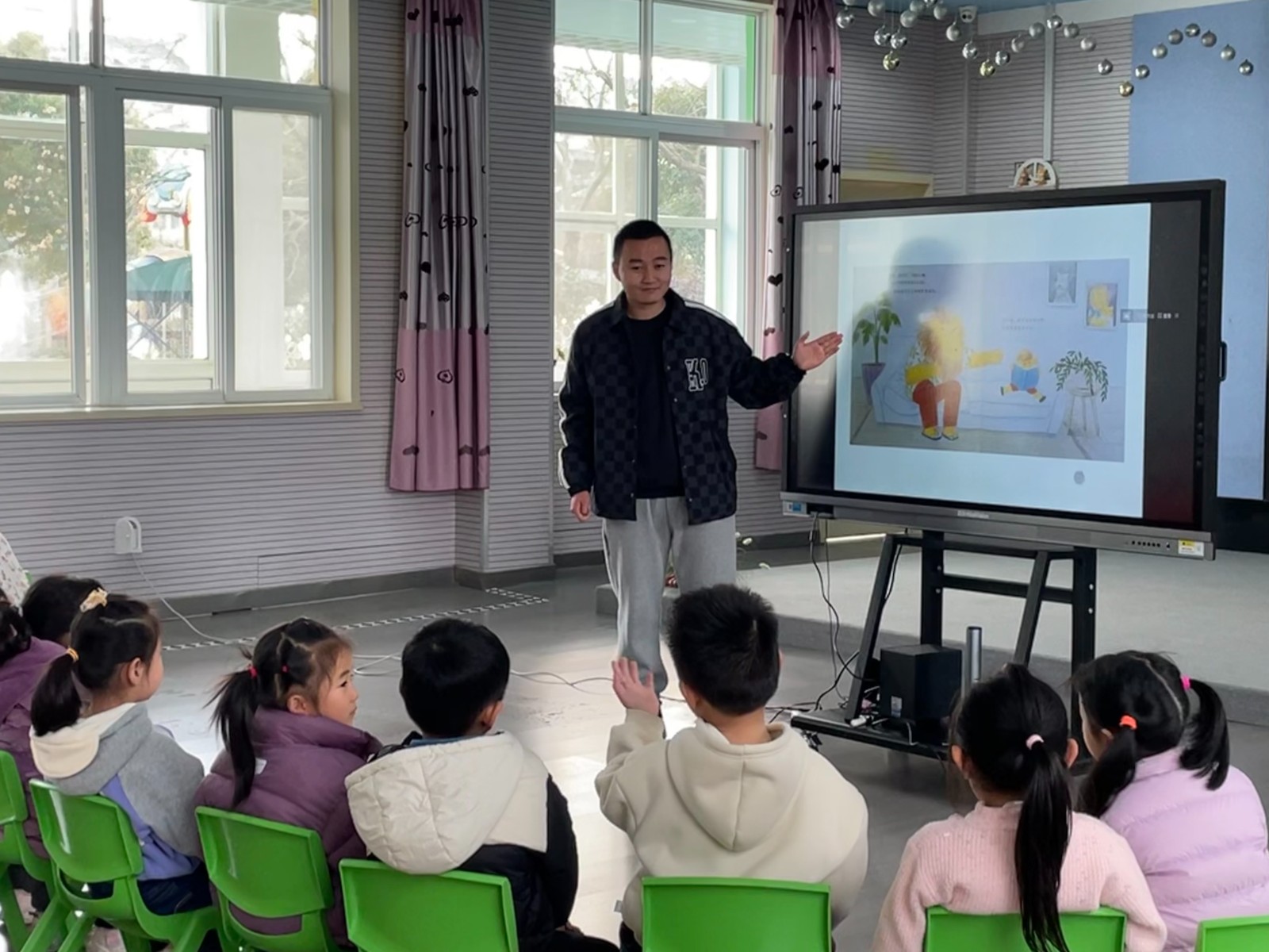 幼儿被教师的讲述深深吸引,纷纷沉浸在绘本故事的世界中。在故事结束后,教师还与幼儿进行了互动,引导他们思考故事中的主题、角色以及情节,进一步激发他们的阅读兴趣。