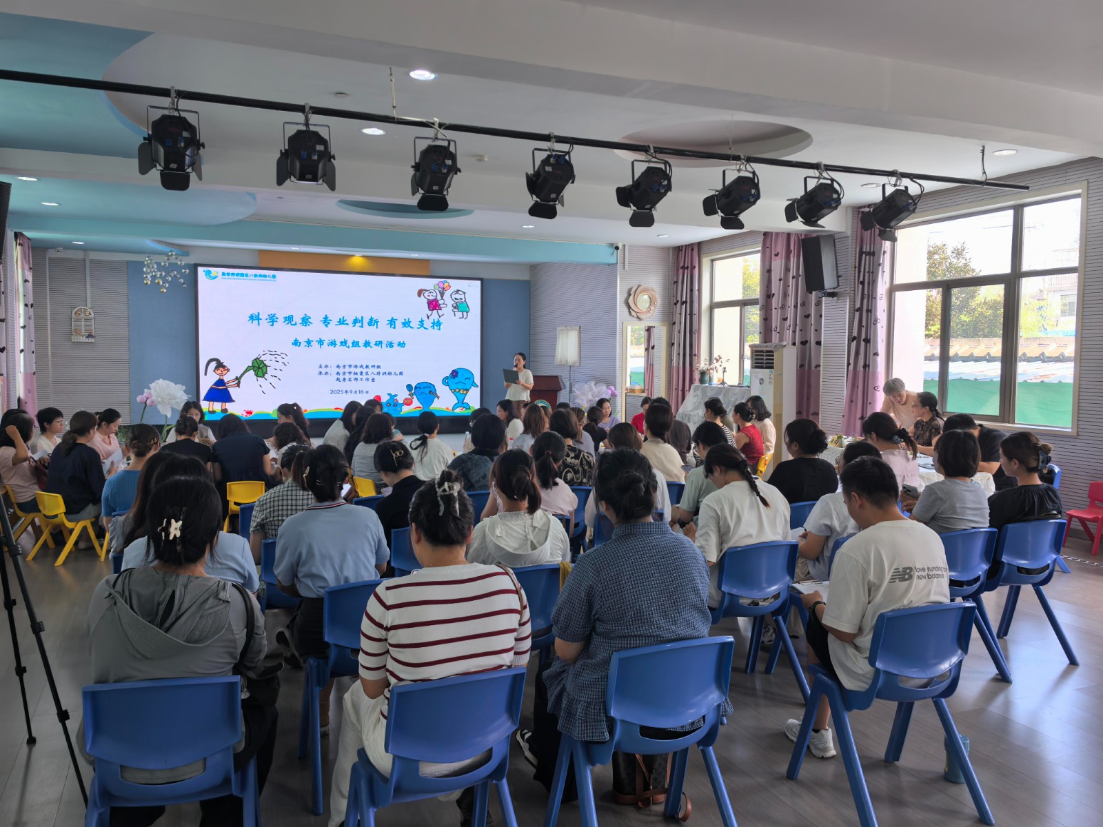 为深入贯彻落实“以游戏为基本活动”的教育理念,提升教师游戏组织与指导能力,促进幼儿全面发展,2025年9月16日上午,八卦洲幼儿园承办了南京市游戏组教研活动。本次活动议题为“在游戏分享环节如何支持幼儿经验生长”,旨在通过共同研讨与交流,明晰在游戏分享环节促进幼儿经验生长的具体路径与方法。出席本次活动有南京师范大学邱学青教授、南京市教研员俞洋老师、栖霞区教师发展中心学前教育研训处魏鹏飞老师,南京市游戏组成员以及赵青名师工作室成员。