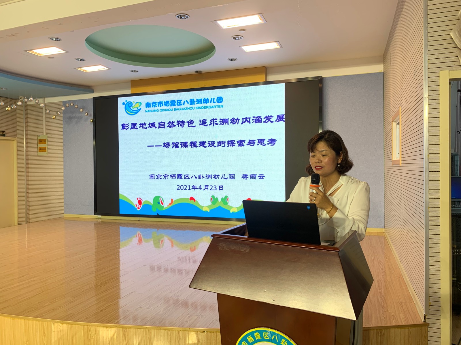 随后代表团教师又聆听了蒋园长《彰显地域自然特色 追求洲幼内涵发展》的课程分享。了解洲幼场馆课程建设的探索与思考、六大体验馆户外游戏、以及在这过程中洲幼人是如何遵循幼儿自然发展规律,将自然教育理念融入日常教育活动中的。