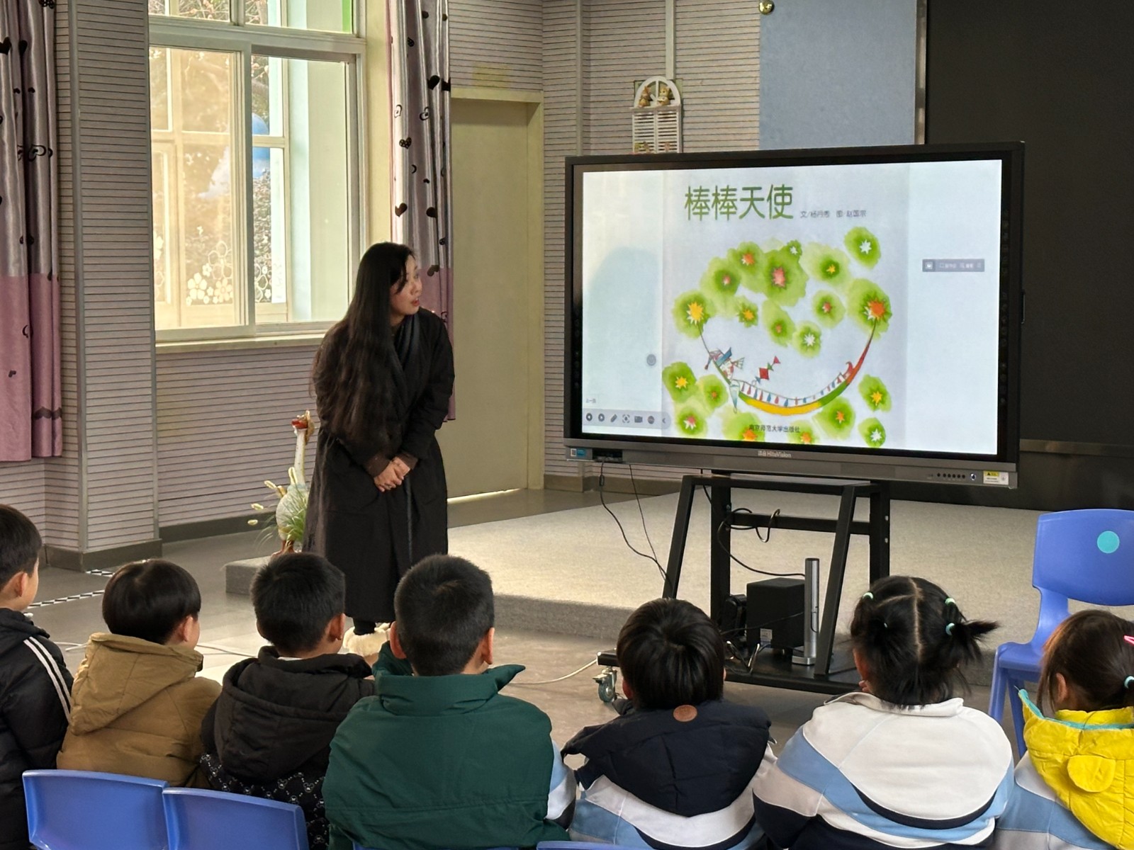 12 月7日入党积极分子马滕带领大二班幼儿开展了绘本阅读《白杨村的美容院》;12月13日入党积极分子张荣带领大三班幼儿开展了绘本阅读《我爸爸是只八爪鱼》;12月20日入党积极分子刘洁带领大四班幼儿开展了绘本阅读《大脚丫跳芭蕾》;12月27日入党积极分子徐荣带领大六班幼儿开展了绘本阅读《棒棒天使》。