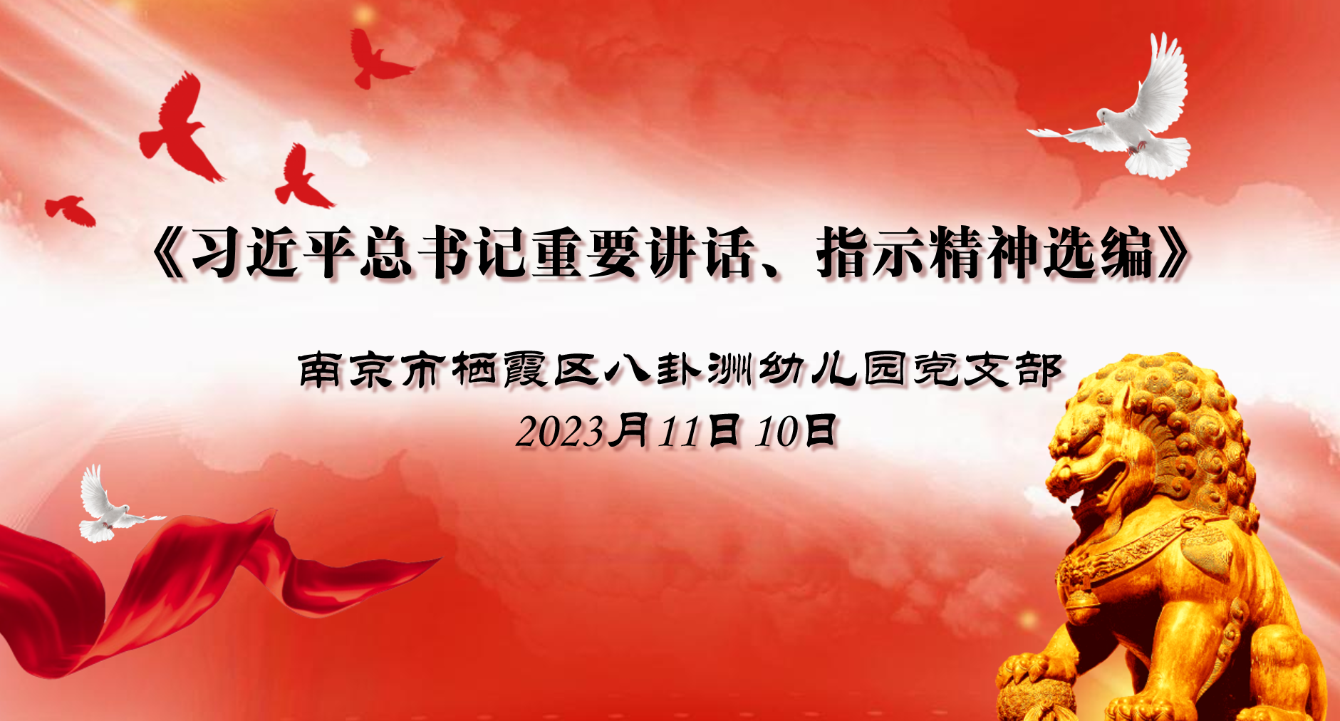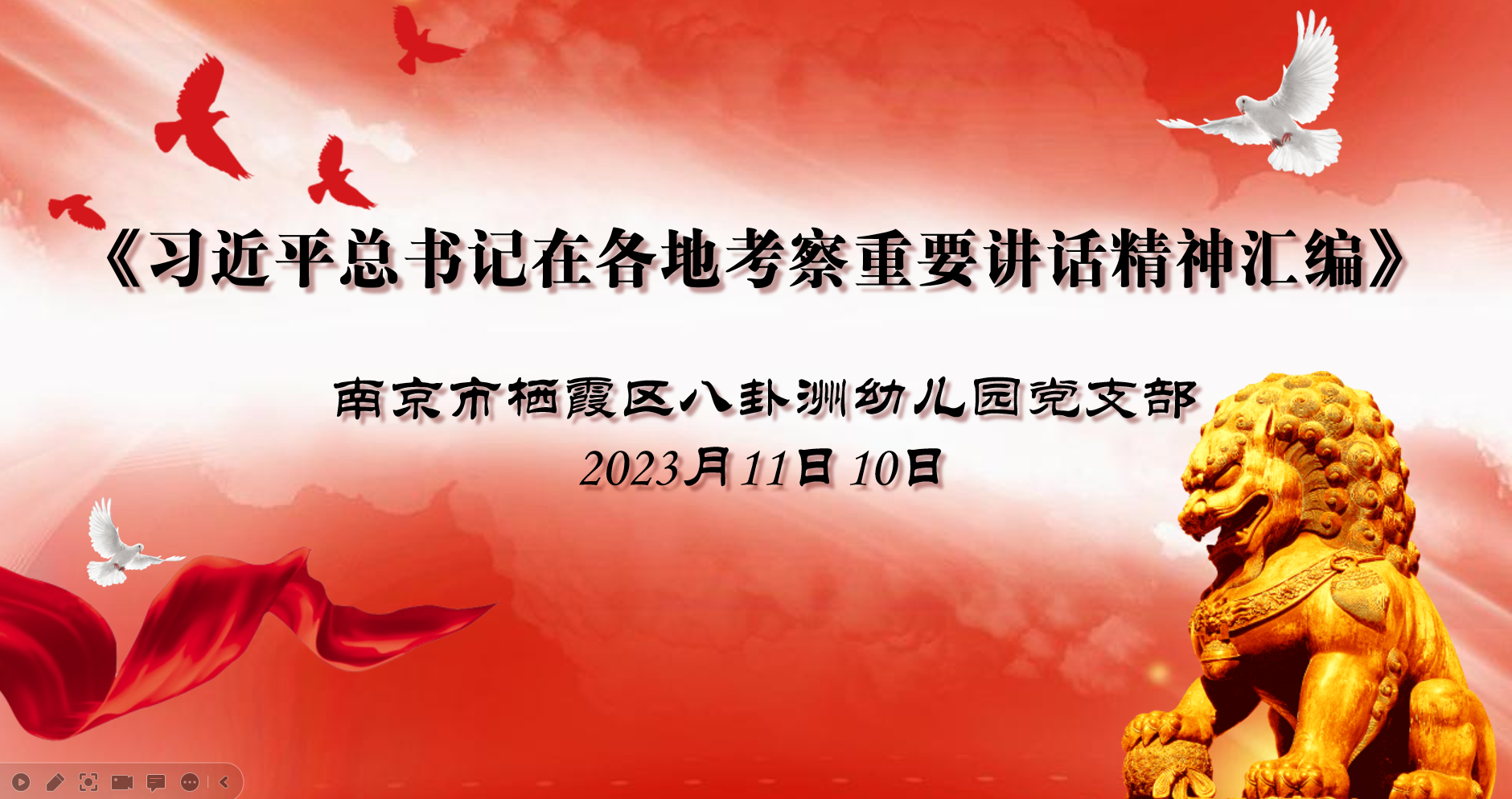 为深刻领会习近平总书记视察重要讲话、重要指示精神的丰富内涵和精神实质,以更有力的举措贯彻落实立德树人的根本任务,11月10日下午八卦洲幼儿园党支部在赵青书记的带领下开展了学习“习近平总书记重要指示精神”主题党日活动。