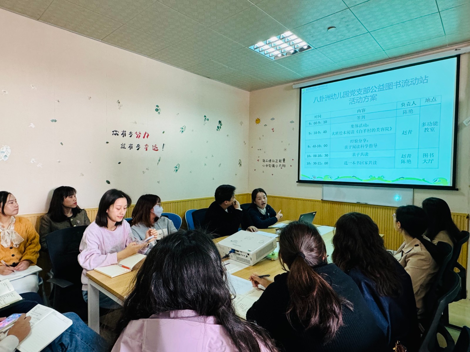 为了贯彻落实教育部发布的《关于大力推进幼儿园与小学科学衔接的指导意见》,进一步推进幼小双向衔接,4月11日上午,中共南京市栖霞区八卦洲幼儿园党支部在赵青书记的带领下开展公益图书流站第三期—大班专场活动,本次活动赵书记邀请了八卦洲中心小学党支部周宏校长,以及八卦洲中心小学和八卦洲中桥小学的部分语文教师,携手开展一场幼小衔接联合教研。
